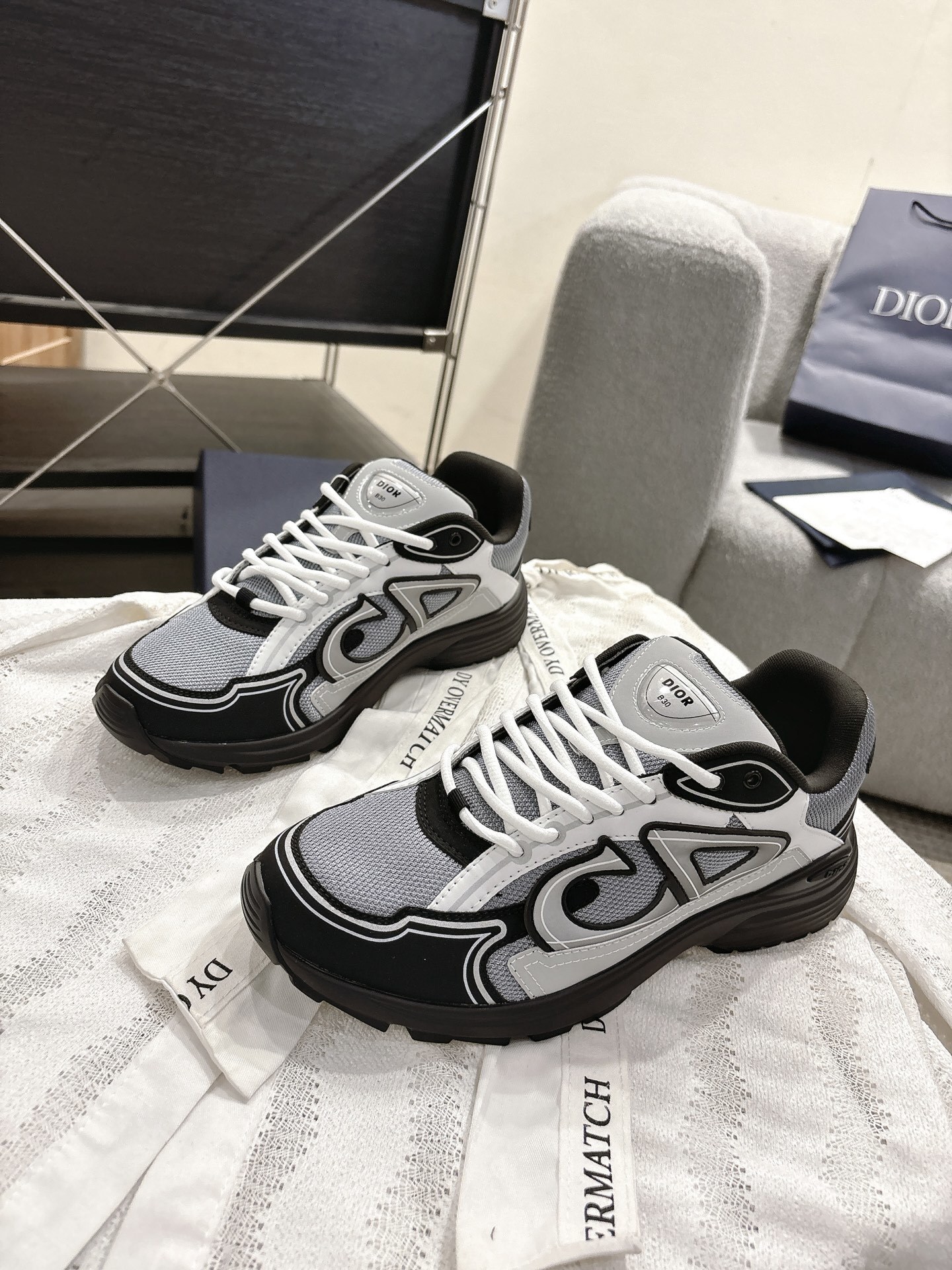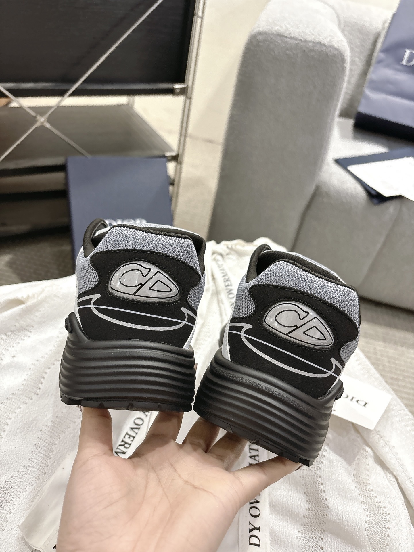 The black and grey color scheme of the Dior B30 sneakers makes them incredibly versatile. They can be paired with jeans, chinos, or even athletic wear, making them suitable for a wide range of occasions. The iconic Dior branding adds a touch of luxury, while the streamlined silhouette ensures a modern and sophisticated look. These sneakers are designed to make a statement without being overly flashy, perfect for the discerning gentleman.