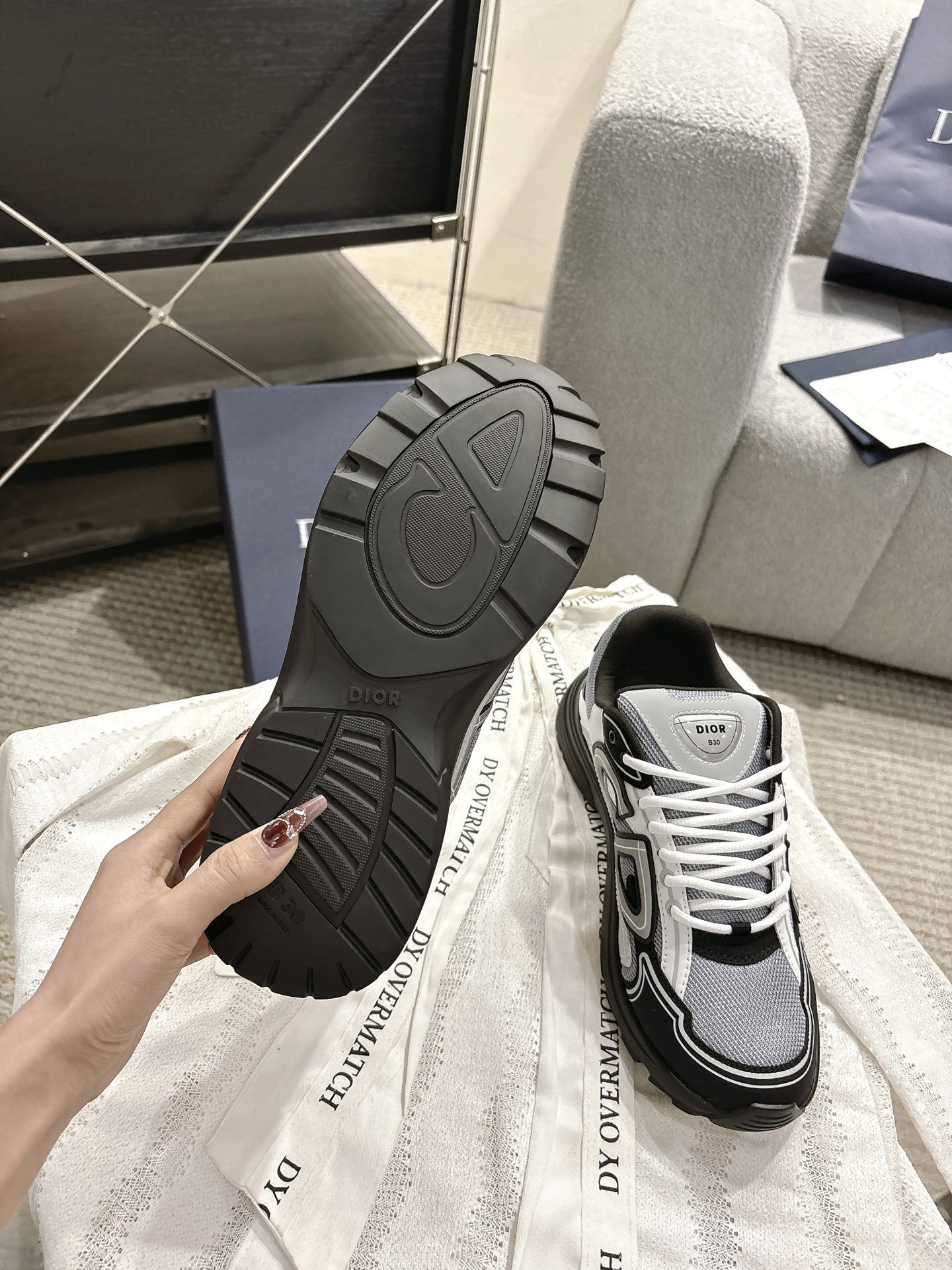 The Dior B30 Black/Grey Sneakers incorporate advanced comfort technology to provide superior cushioning and support. The padded insole conforms to the shape of your foot, offering personalized comfort. The breathable mesh lining promotes airflow, preventing overheating and keeping your feet fresh. Whether you're walking, running, or simply standing, these sneakers will keep your feet feeling great all day long.
