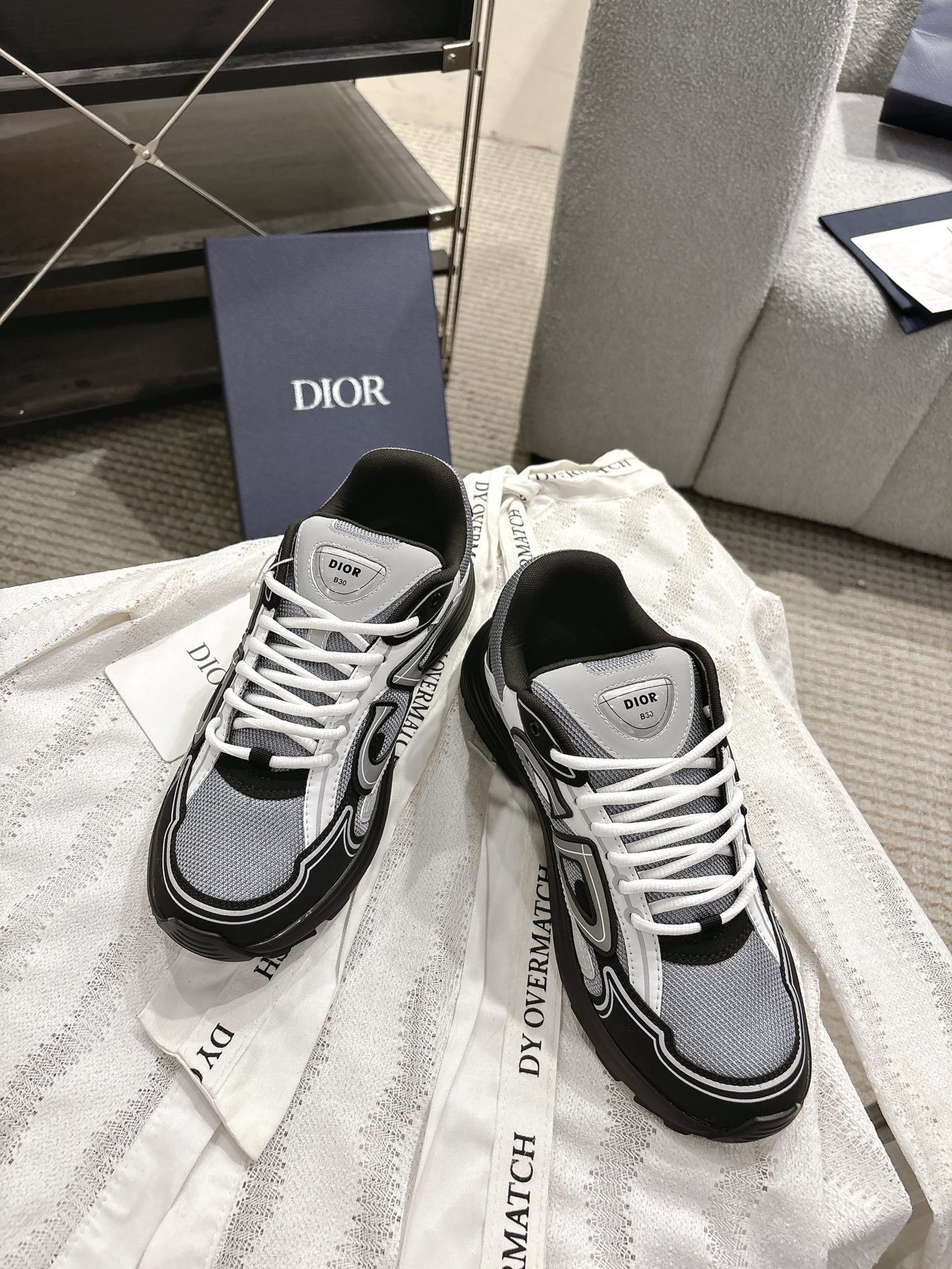 The Dior B30 Black/Grey Sneakers are made of a combination of high-quality materials, including leather, mesh, and rubber. The leather provides durability and structure, while the mesh ensures breathability. The rubber sole offers excellent traction and support. These materials are carefully selected to provide both comfort and longevity.