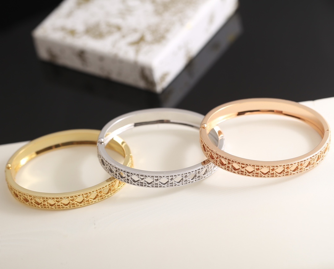 The Dior Bangle Set embodies timeless elegance and sophistication. The classic design and high-quality materials ensure that these bangles will remain stylish for years to come. The set's versatility allows you to wear them with any outfit, making them a valuable addition to your jewelry collection. The Dior Bangle Set is a symbol of luxury and good taste that will never go out of style.