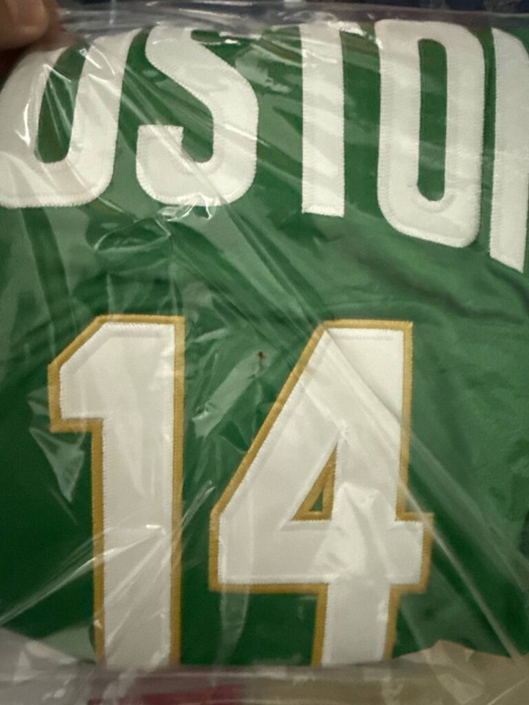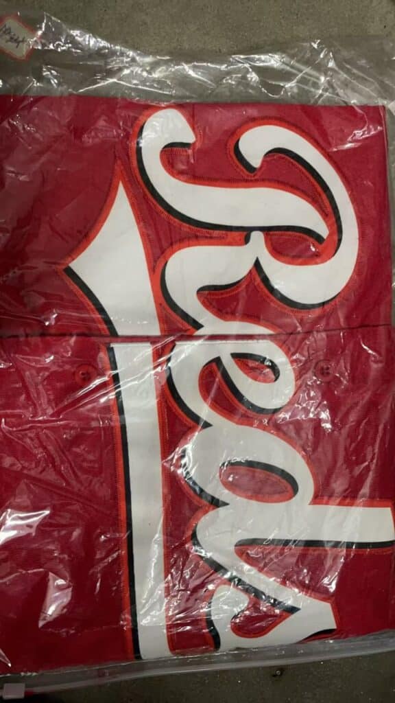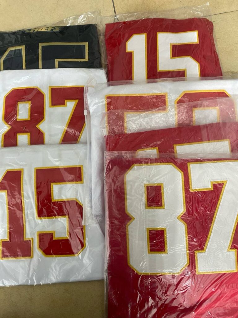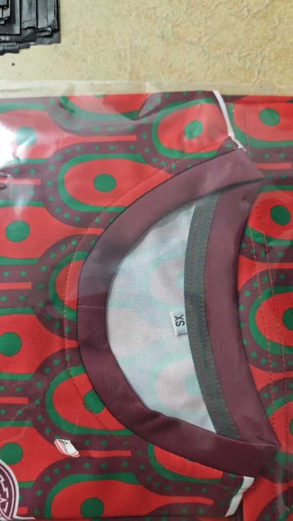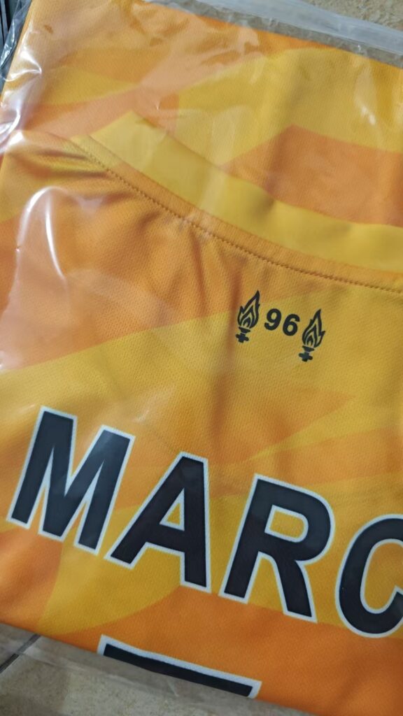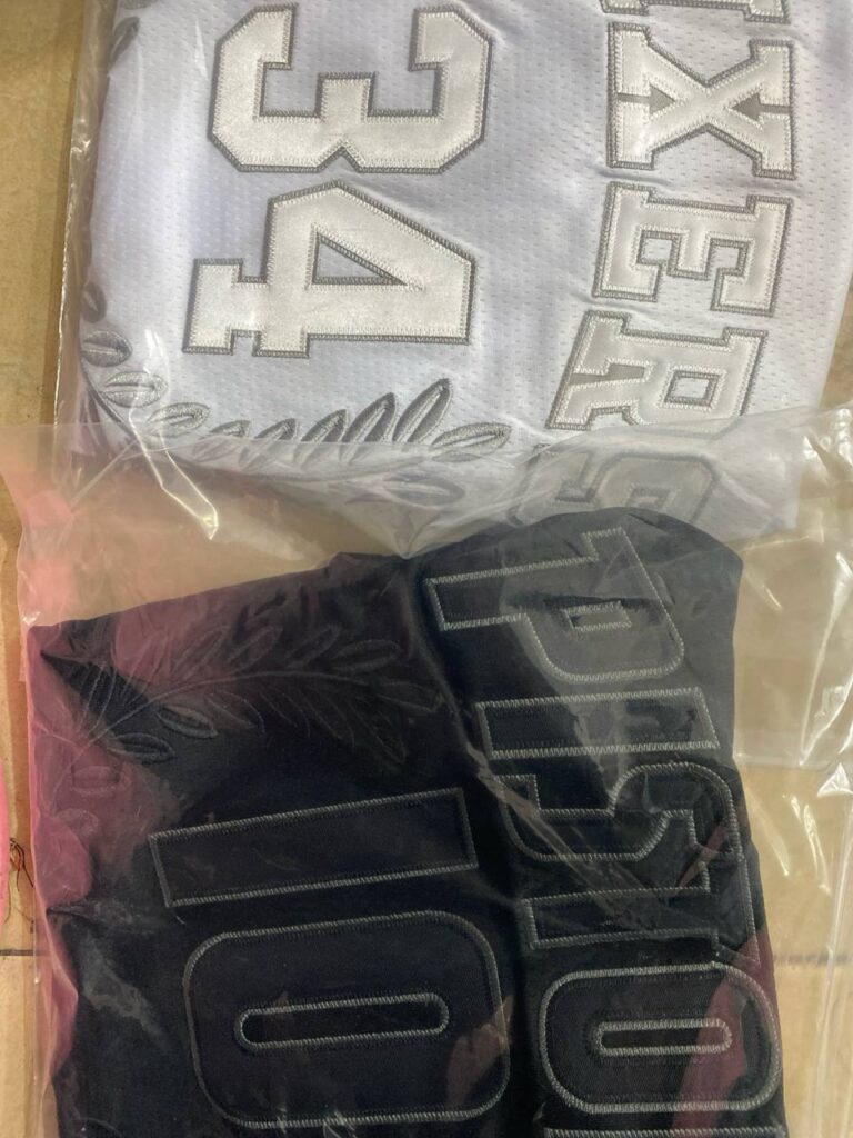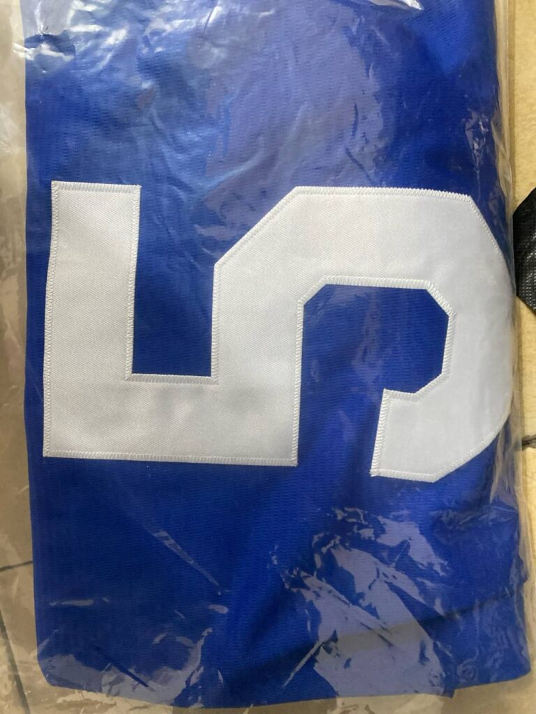 A: The jersey is made of high-quality, breathable polyester fabric designed for comfort and durability. This material wicks away moisture to keep you dry and comfortable, whether you’re on the field or cheering from the stands.