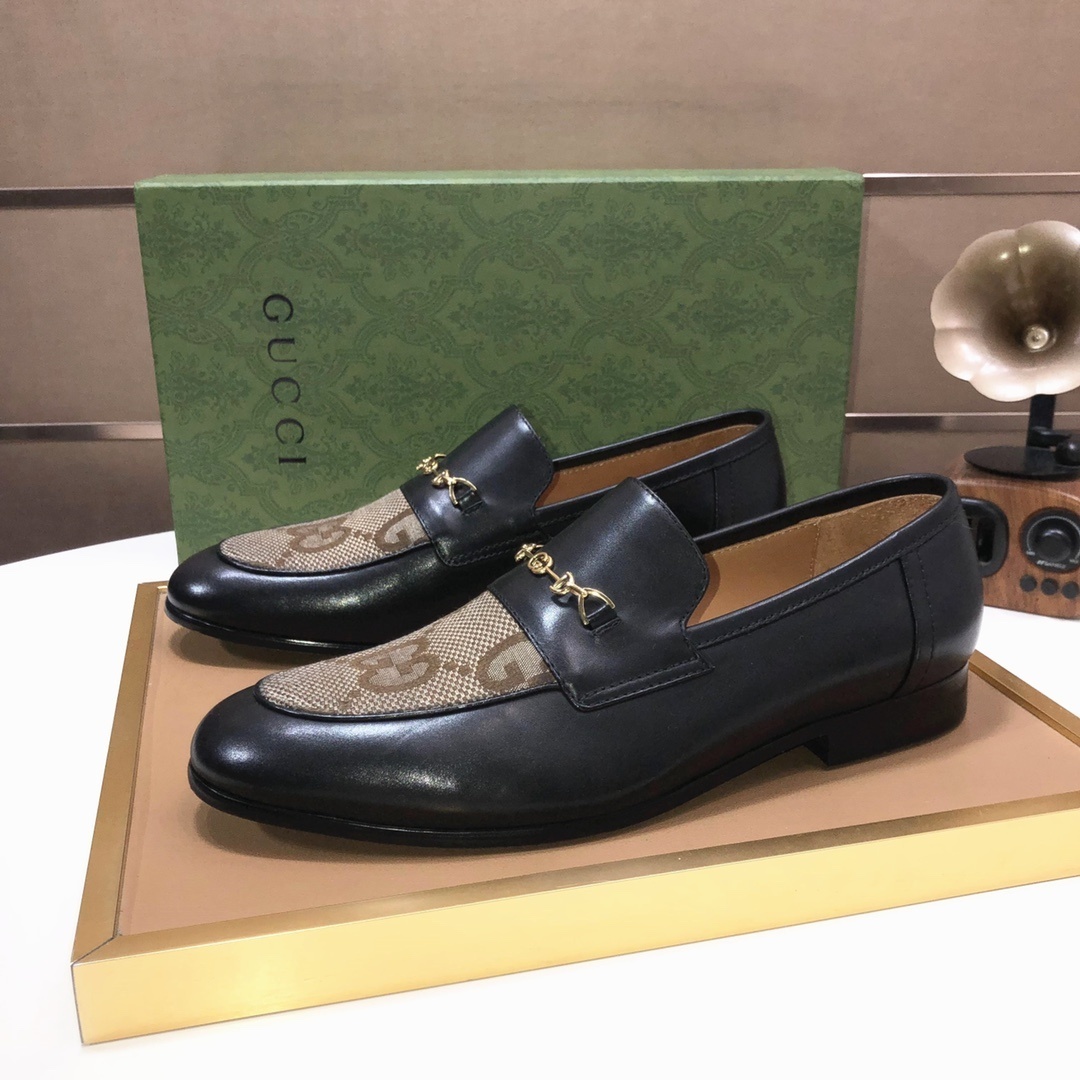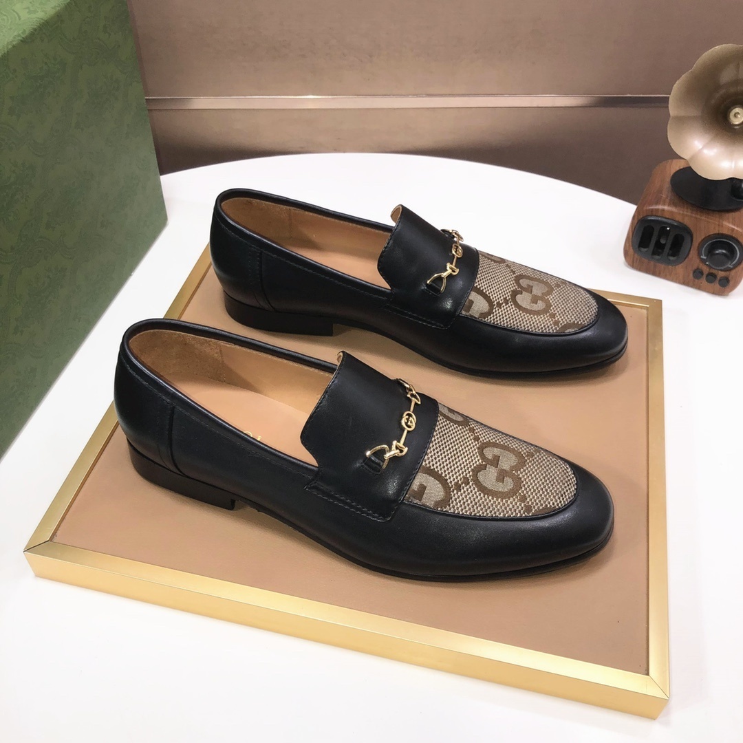 Introducing the Gucci Men's Black Leather GG Mesh Loafers